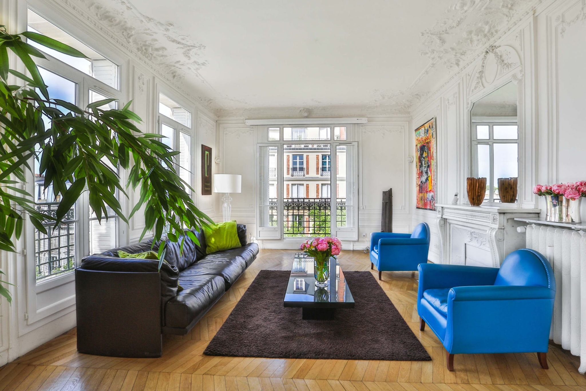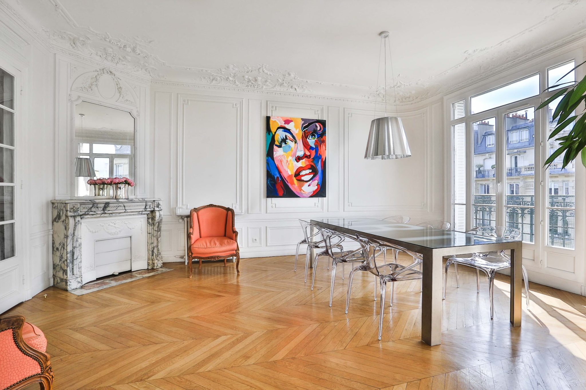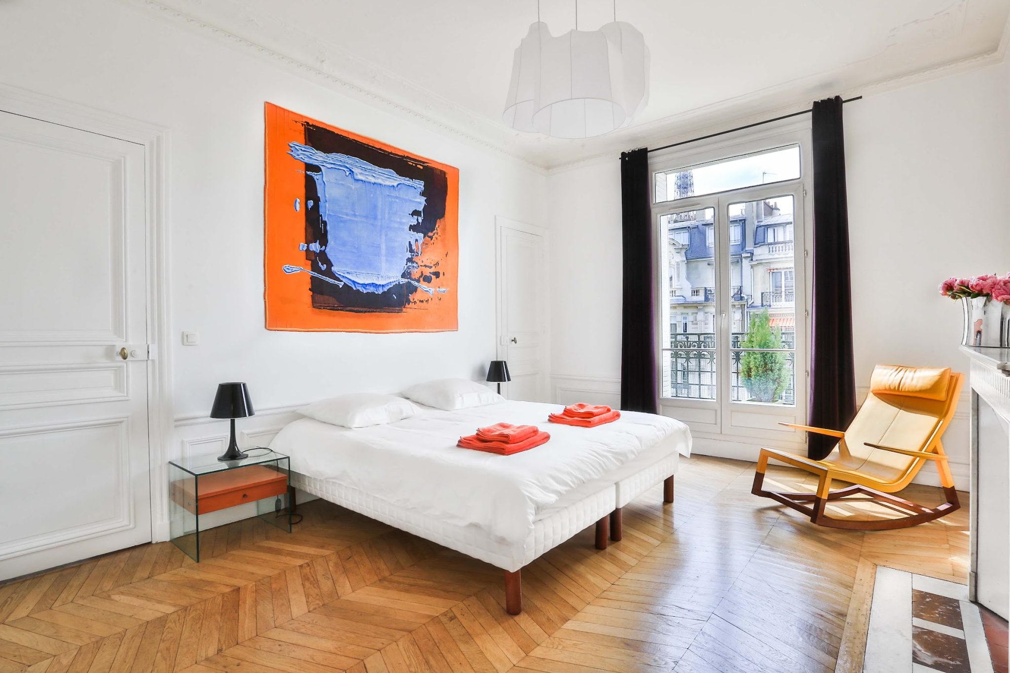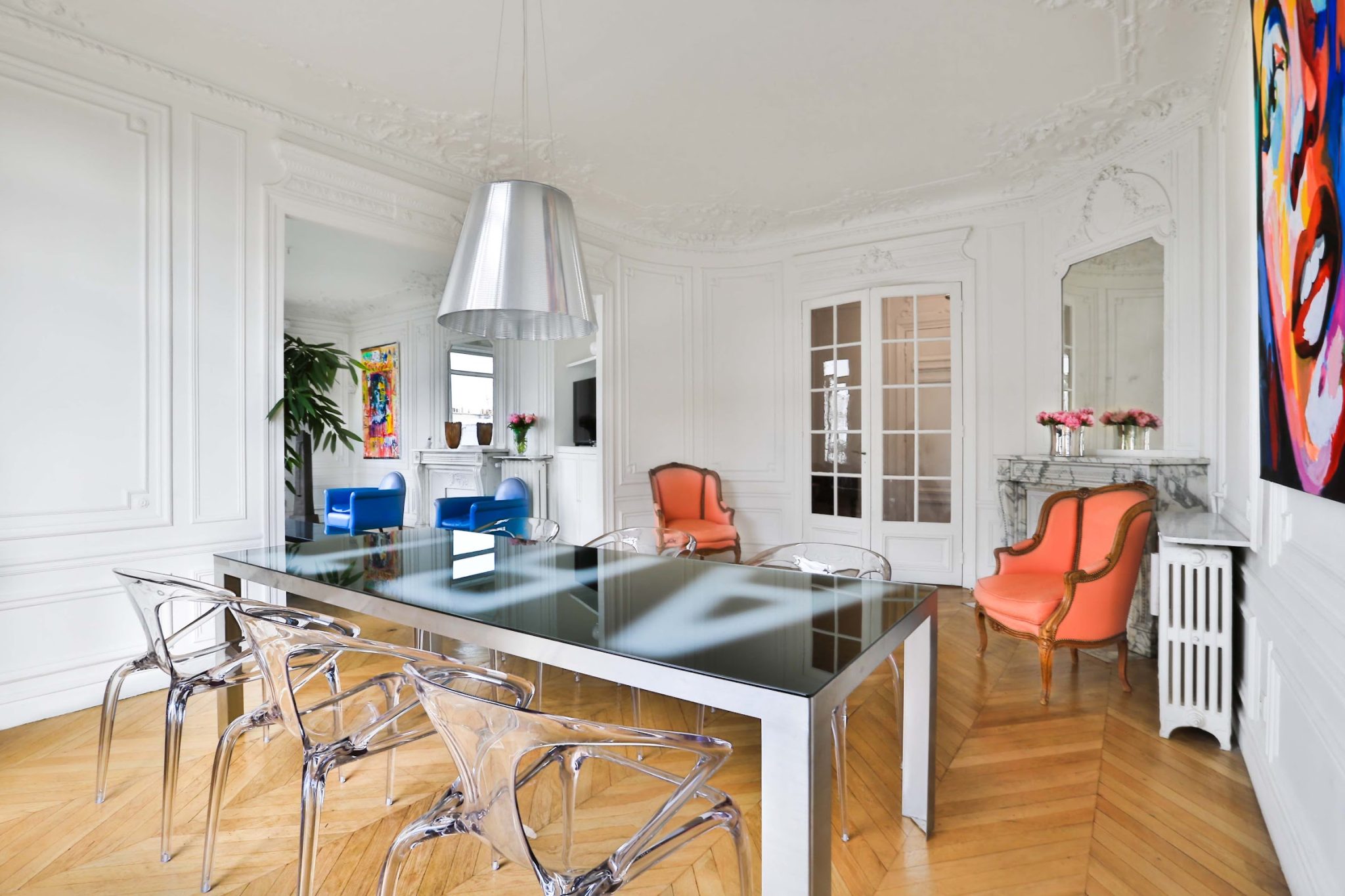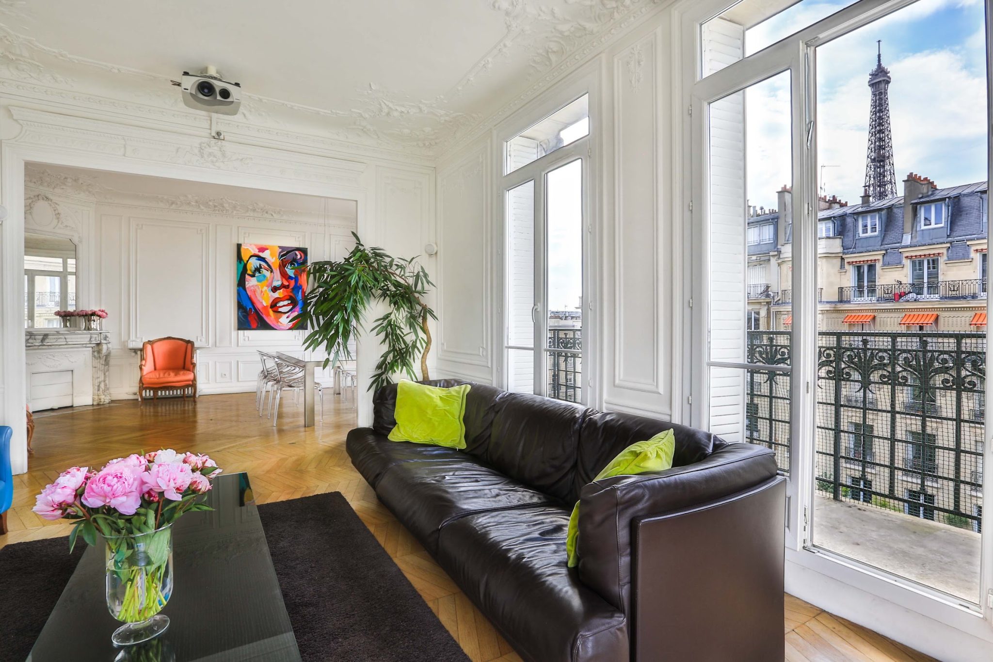 Les moulures sur ses hauts plafonds, ses pièces spacieuses, son mobilier de designer et sa vue imprenable sur la célèbre Tour Eiffel sont autant d’atouts qui font de cet espace un lieu prestigieux.