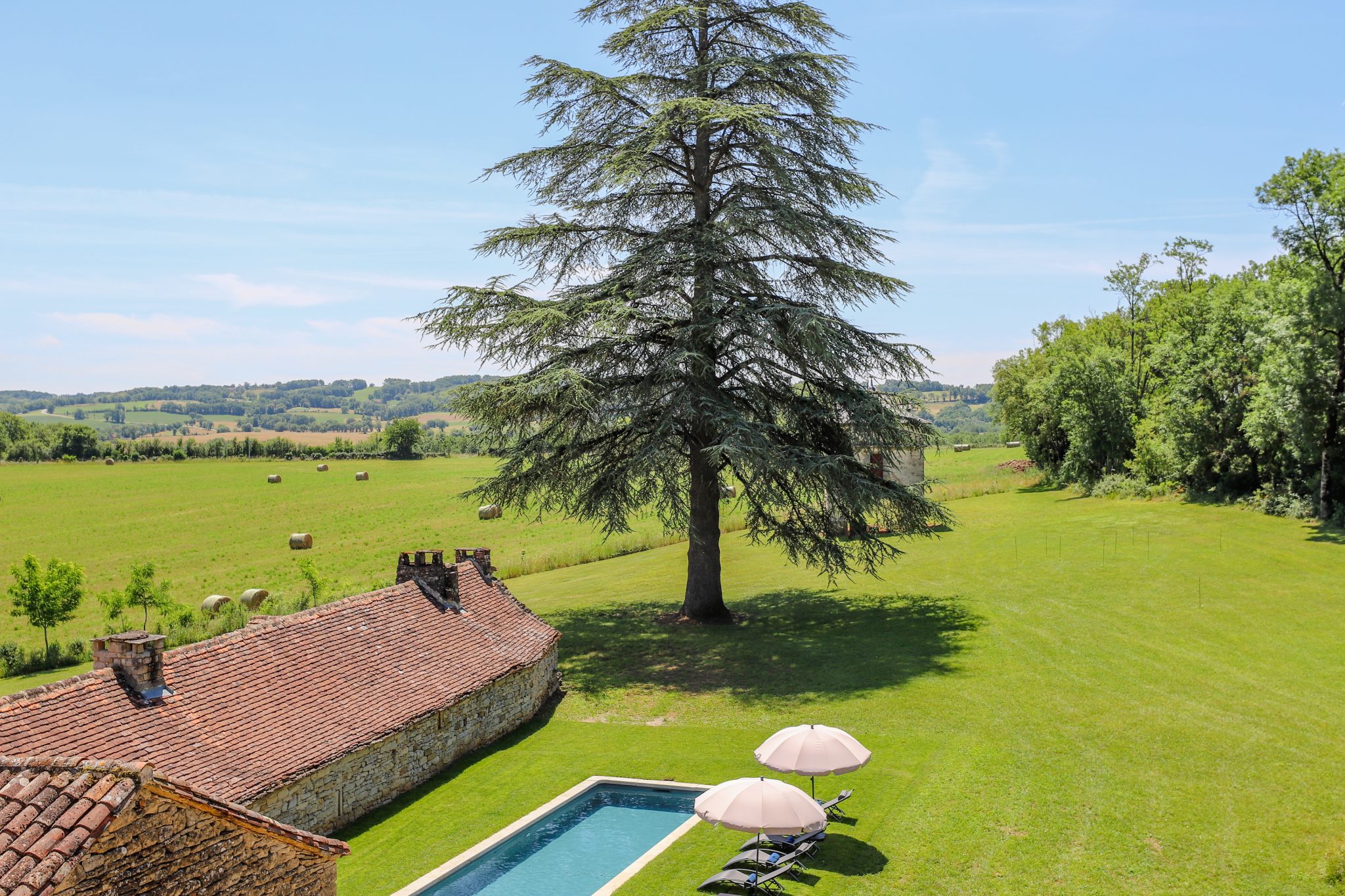 - Une piscine bordée de verdure,