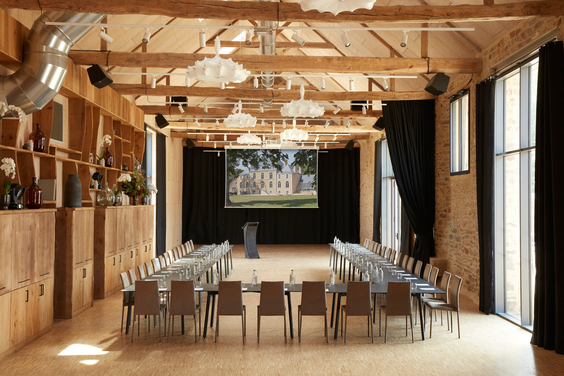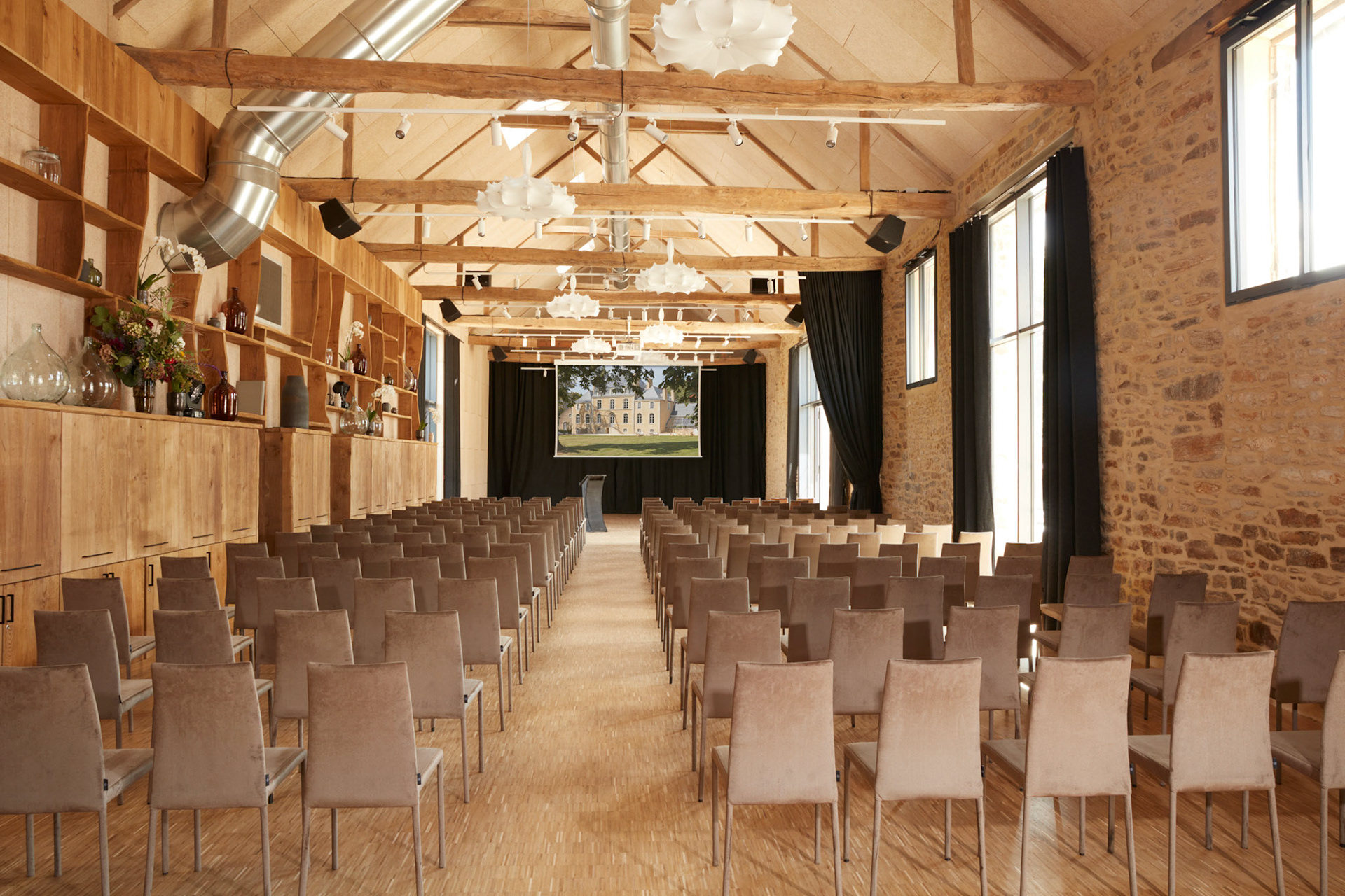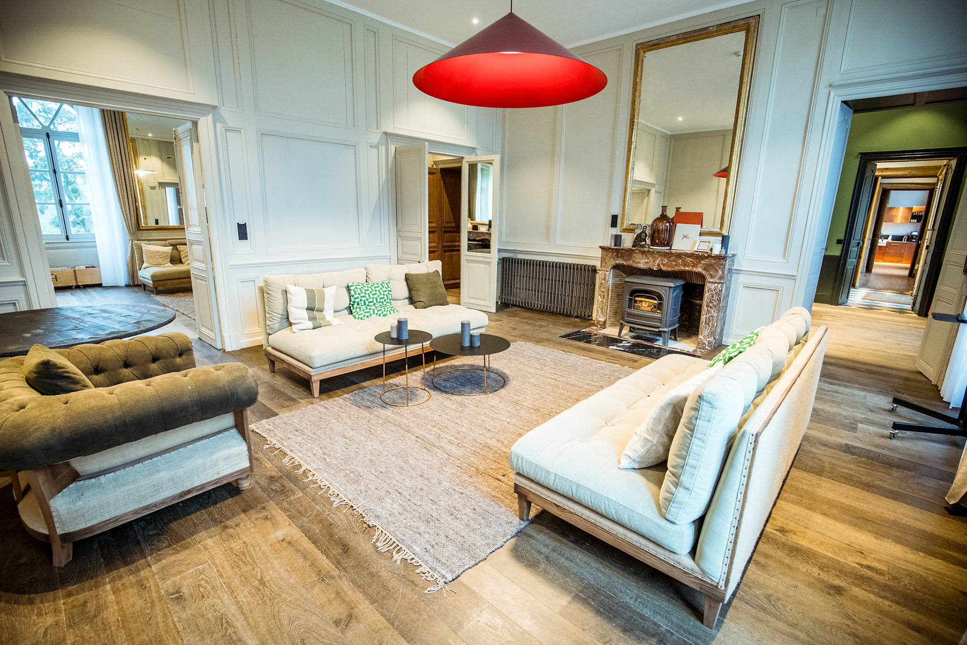 Le domaine propose des espaces de vie généreux et variés. Parmi eux, une Tente Safari chauffée au bois de 500 m², idéale pour accueillir des événements toute l’année. Le château, pensé comme une grande demeure familiale, comprend des salons chaleureux parfaits pour réunions et dîners conviviaux.