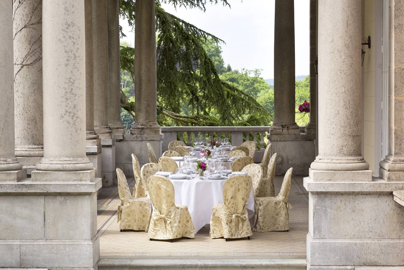 Cet élégant château du XIXe siècle de 2000 m² comporte divers salons de grandes surfaces et lumineux, répartis sur quatre étages, ainsi qu’une grande terrasse. Le domaine du château possède pour sa part une superficie de 5 hectares. C’est un endroit absolument unique pour réaliser des événements mémorables, à la fois privés et professionnels.