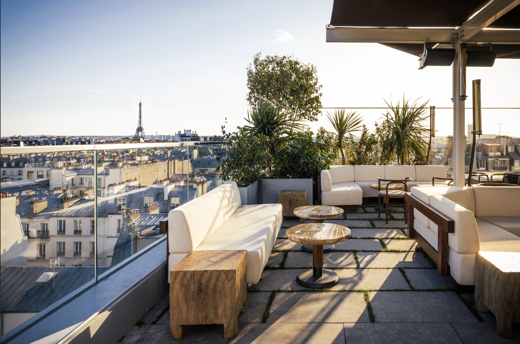 – Le rooftop peut recevoir 50 personnes assises et 60 debout avec une vue panoramique sur Paris.