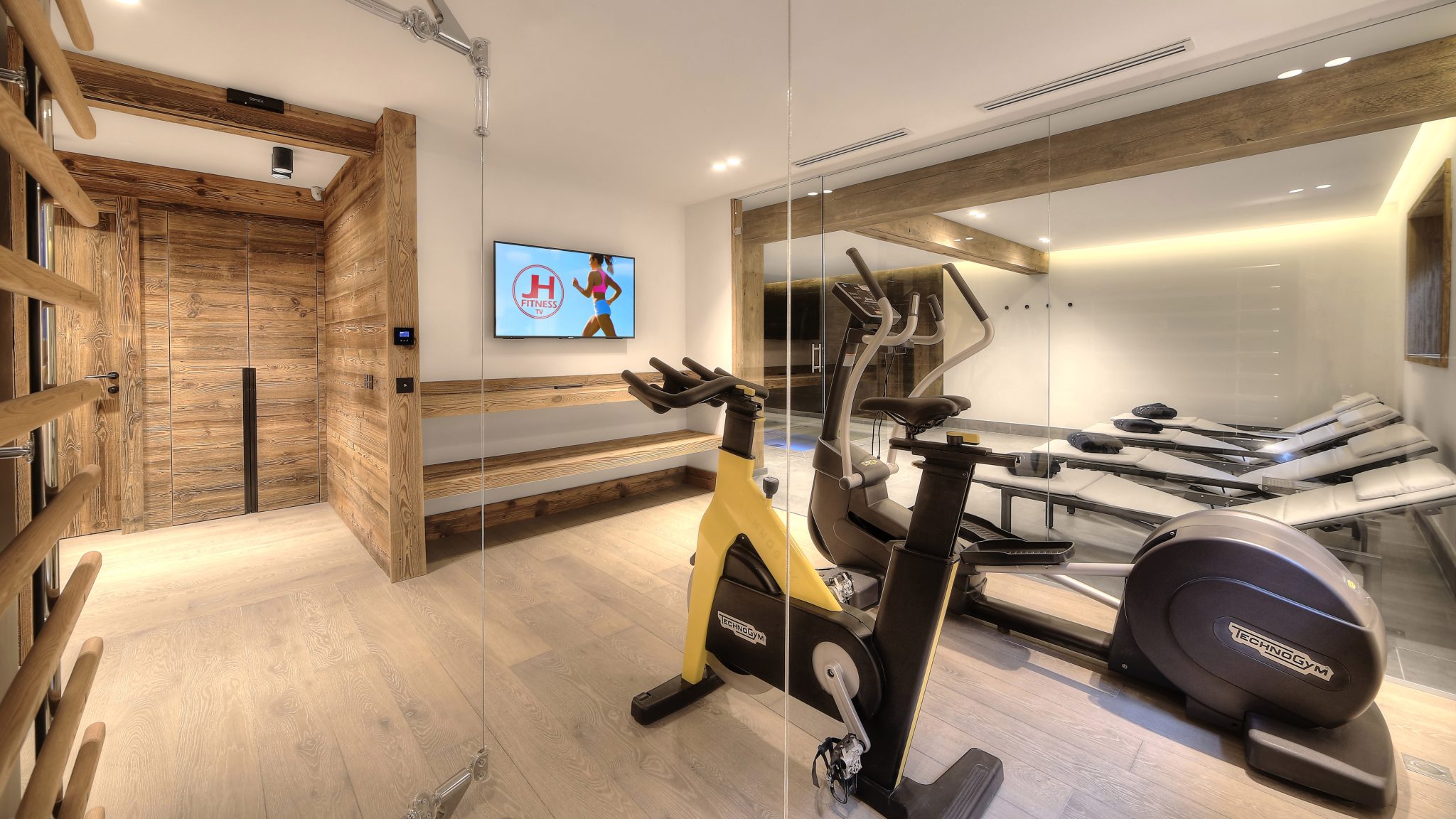 Une salle de fitness et un home cinéma pour combiner sport et divertissement,