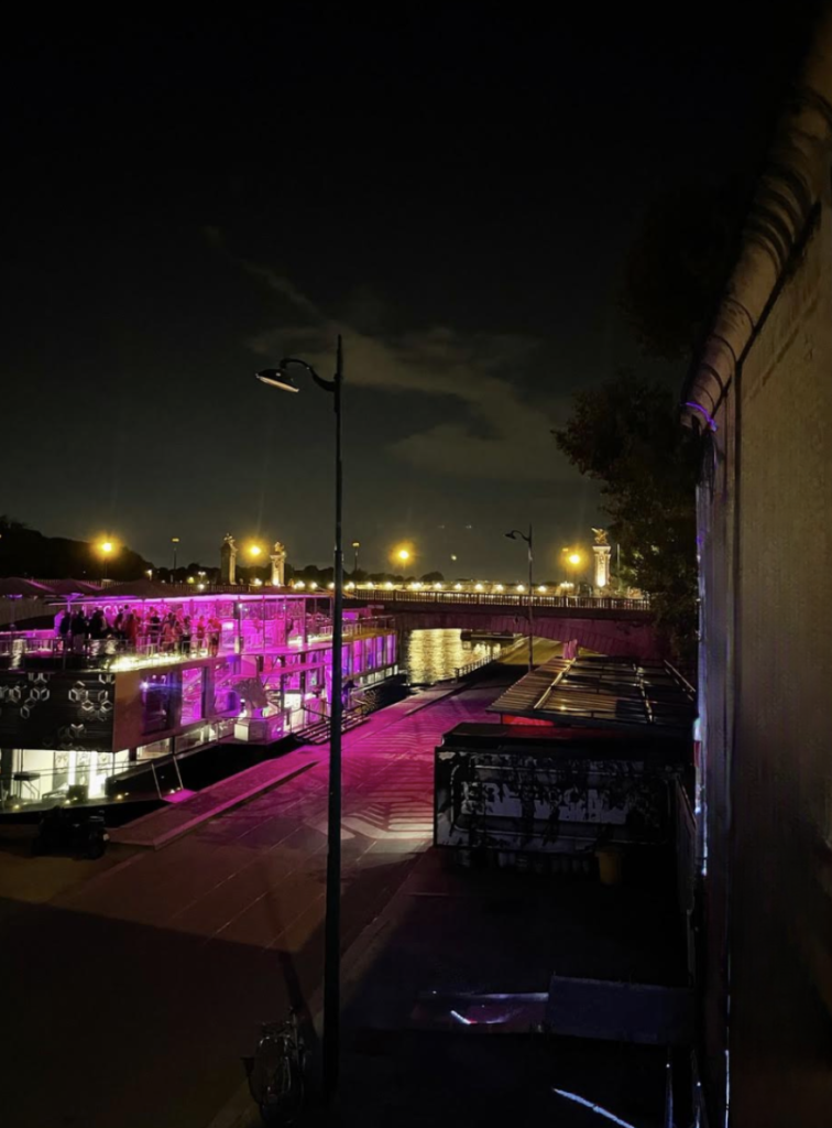Cette péniche modulable se compose de trois espaces principaux, reliés par un patio vertical impressionnant qui traverse le bâtiment du sol au plafond. À la base de ce patio, un bassin prolonge symboliquement la Seine à l’intérieur même de l’espace, immergeant les visiteurs dans une expérience sensorielle unique.
