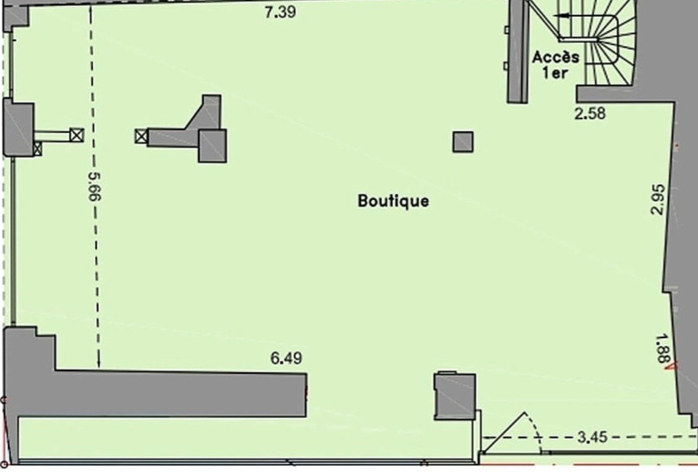Le lieu bénéficie d’une belle luminosité naturelle grâce à sa configuration sur rue, offrant une visibilité intéressante pour les marques souhaitant capter l’attention des passants.