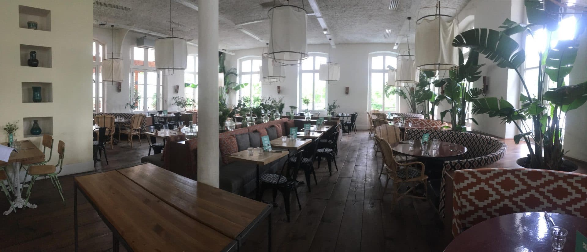 Construit sur deux étages, vous y trouverez plusieurs ambiances en fonction des espaces. Au rez-de-chaussée, une décoration avec du mobilier en bois donnant un esprit autant récup que moderne, il comprend également un bar et un espace billard. Au premier étage, le restaurant avec ses grandes banquettes en demi cercle encastrées dans le mur et couvertes de tissu à motifs donne une ambiance cosy. Puis, le rooftop empli de verdure et de fleurs, combine une décoration sobre et moderne mettant en valeur ce grand espace.
