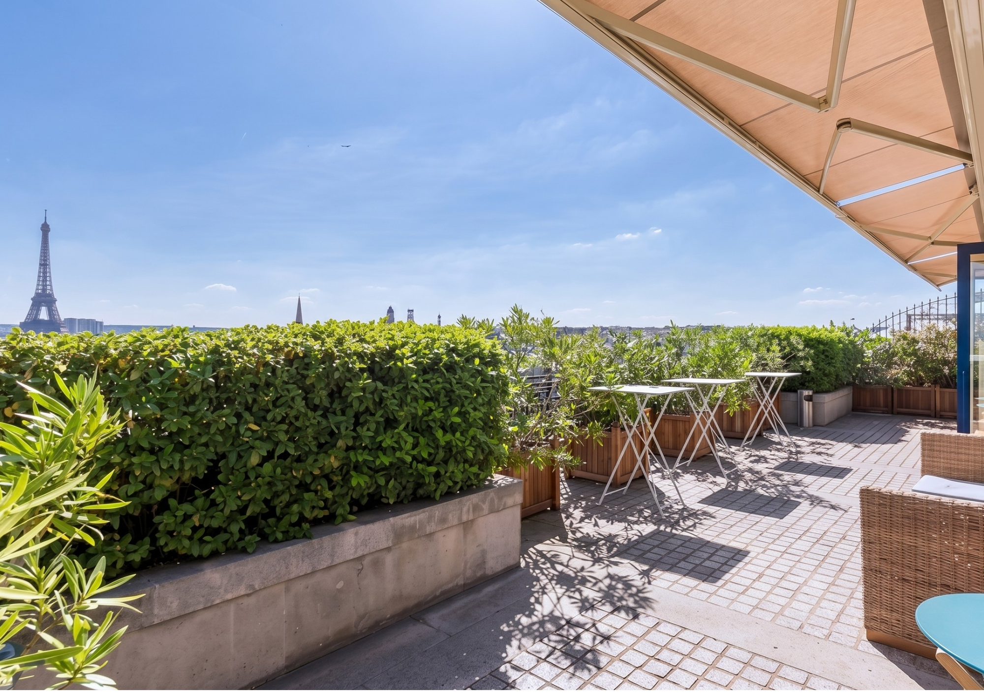 Le véritable atout de ce lieu reste sa terrasse panoramique de 65 m², offrant une des plus belles vues de Paris. Vous y admirerez un panorama unique sur l’Arc de Triomphe, la tour Eiffel, le Grand Palais, les Invalides et bien d’autres monuments emblématiques de la capitale.