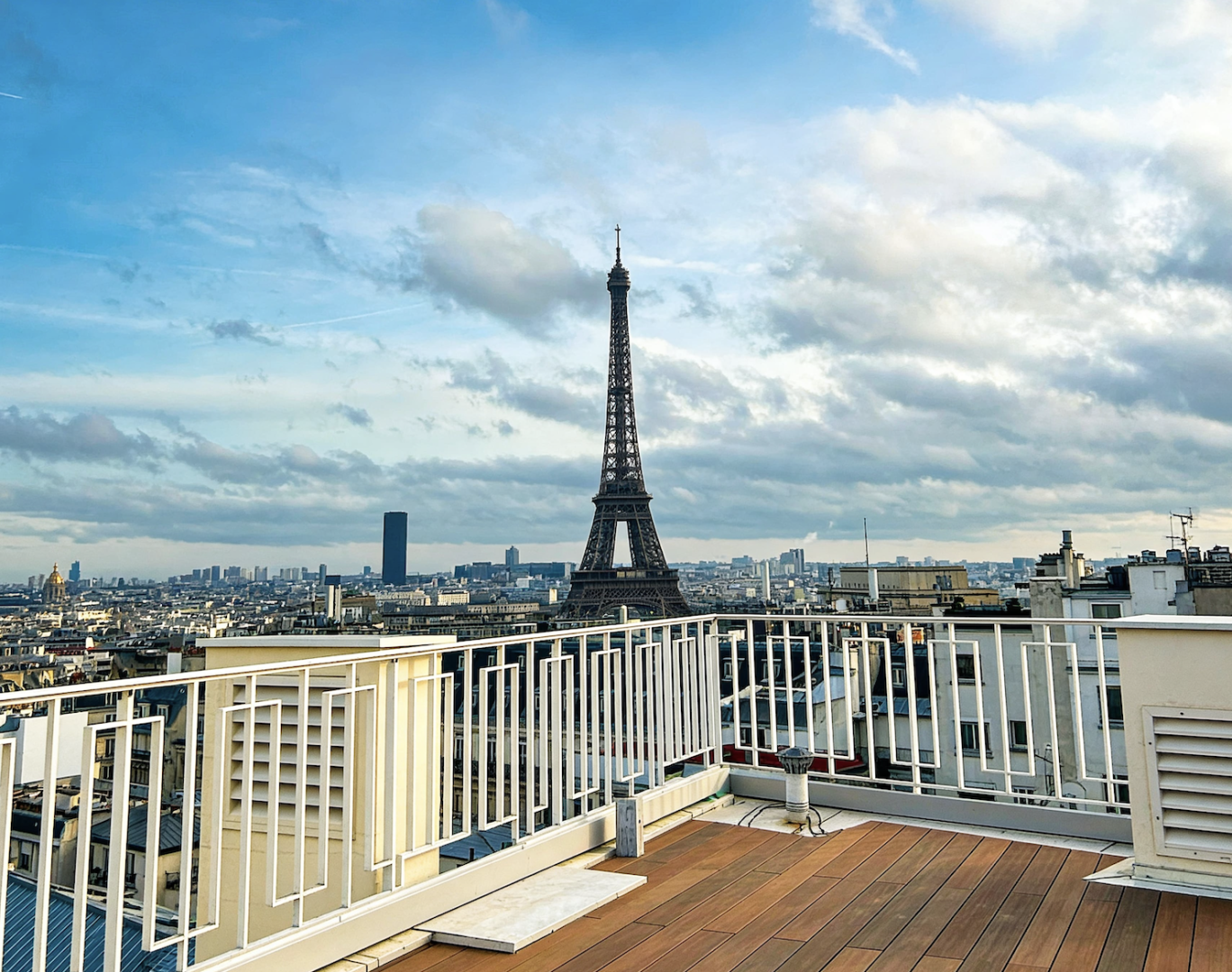 Un rooftop dans le 8ᵉ arrondissement avec la Tour Eiffel en toile de fond, idéal pour des événements qui prennent de la hauteur.
