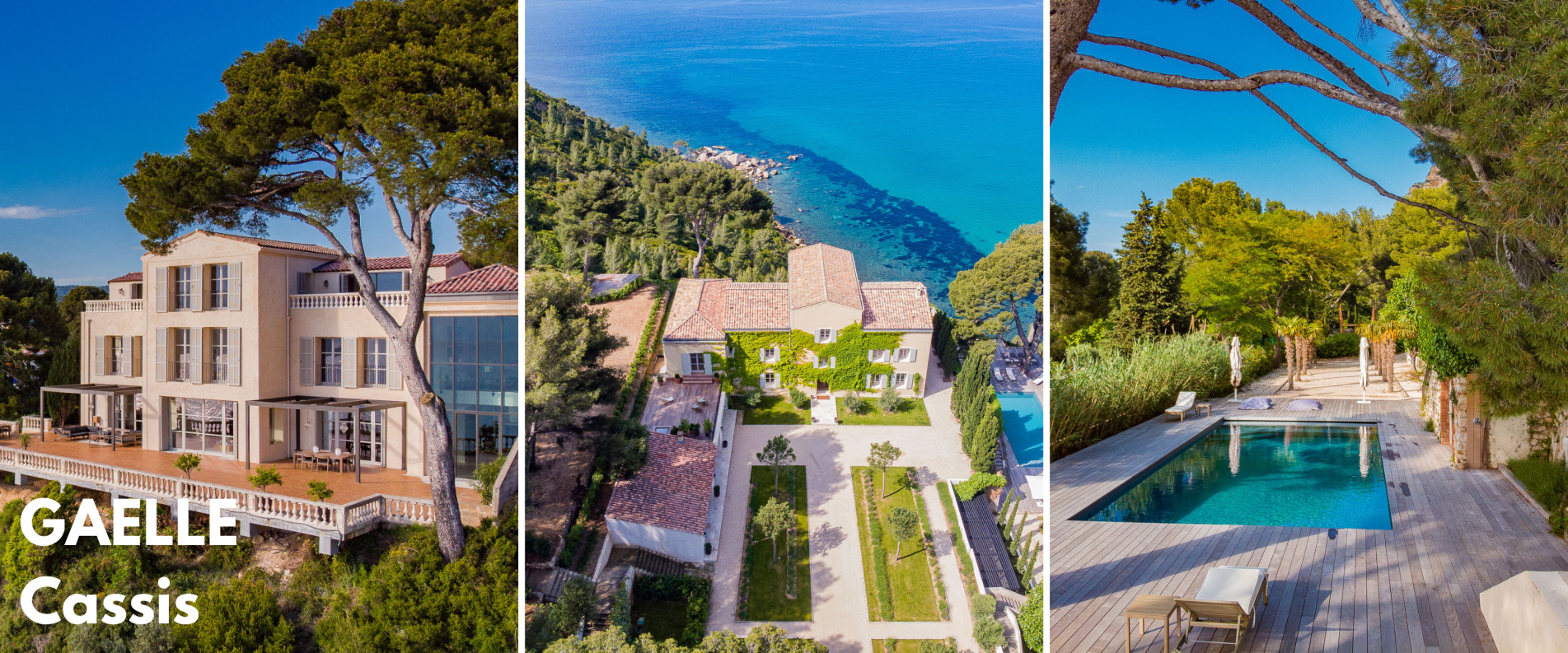 La maison Gaelle, en bord de mer à Cassis, propose une atmosphère plus intimiste. Son cadre naturel et sa localisation en font un lieu idéal pour des événements confidentiels et des dîners privés.