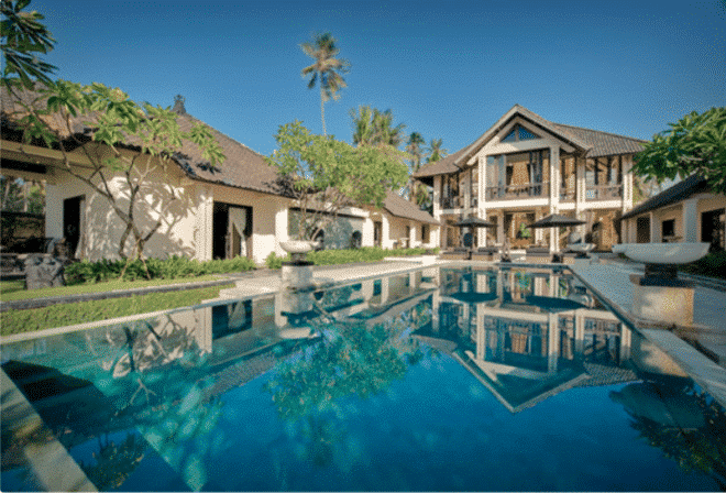 Possédant de 2100 m², cette villa luxueuse se situe près du village Saba, à Bali. Avec une vue imprenable sur la mer, pour des vacances exotiques et raffinée dans un paradis protégé.